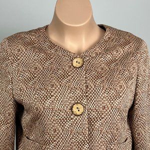 Lafayette 148 New York brown tan textured button front blazer jacket, plus size 16