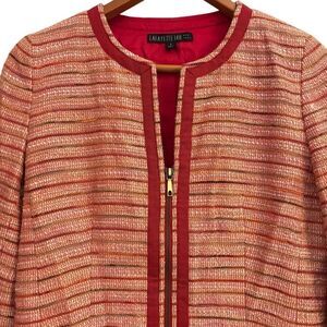 Lafayette 148 Women’s Red Gold Tweed 2-Way Zipper Career Professional Jacket 4