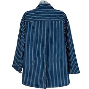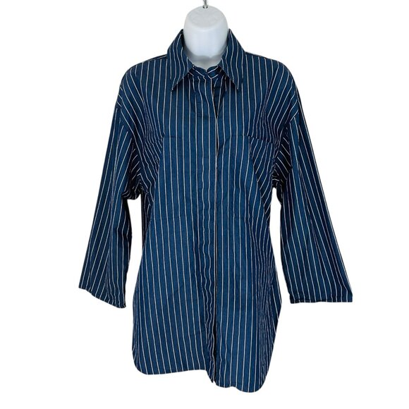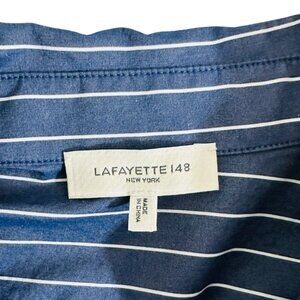 Lafayette 148 Women's Size M Striped Oversize Side Slit Blue White Tunic Shirt