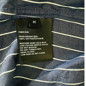 Lafayette 148 blue and white striped tunic shirt - Classic collar - Hidden full button front - 3/4 length sleeves (no cuffs) - Front pockets - Slits at sides and back - Curved hem