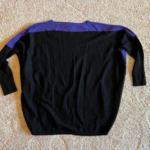 Lafayette 148 Wool cashmere sweater in vibrant purple and black, dolman sleeves.