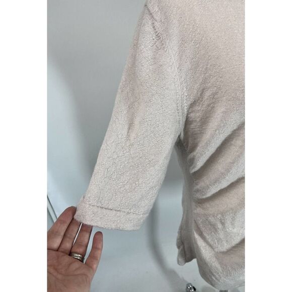 Lafayette 148 XL Cardigan Sweater Beige Ruched Sides Button 1/2 Sleeve