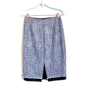 Lafayette 148 Y2K Twee Preppy Old Money Tweed Leather Purple Black Pencil Skirt