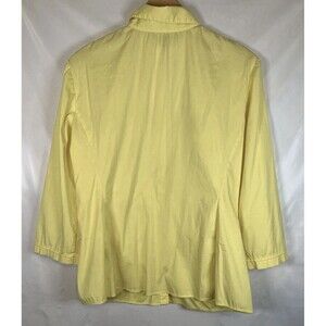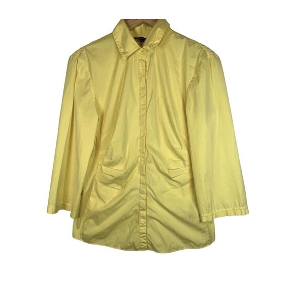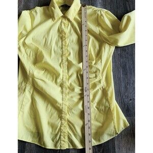 Lafayette 148 Yellow 3/4 Sleeve Ruched Gathered Stretch Button Up Top Blouse 6