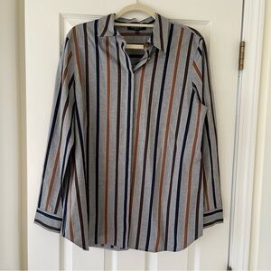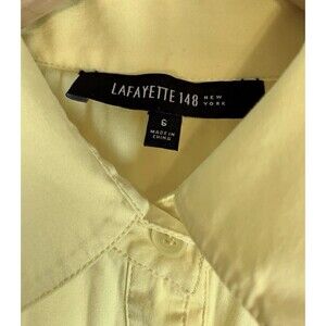 Add a pop of color to your wardrobe with this gorgeous yellow Lafayette 148 New York button-up top. The blouse features a collared neckline, 3/4 sleeves, and a button closure. The stretchy, gathered material gives the top a flattering fit, making it perfect for any occasion, from casual to formal. The top is lightweight and comfortable, making it a great choice for any season. It's a classic, colorful design that will make you stand out in any crowd.