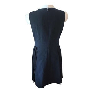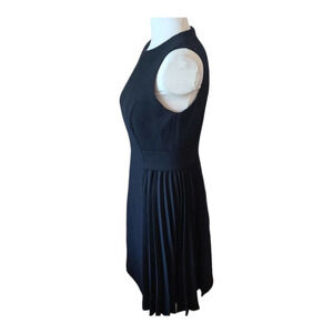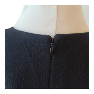 Black wool dress with lining. Zip up and clasp back. Very flattering. Fit and flare.