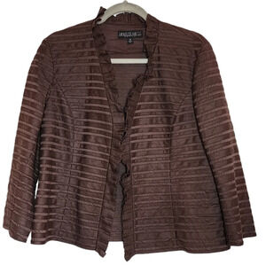 Lafayette 148 brown linen cotton ruffle blazer. Women's size 14.