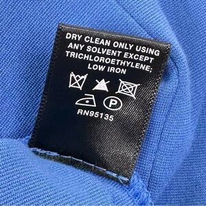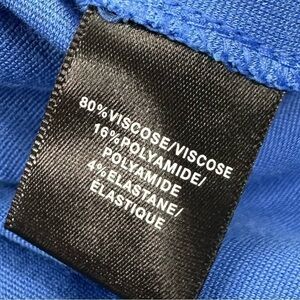 Lafayette 148 New York Blue/navy blue colorblock asymmetrical dress. Wide round neck, sleeveless, darts at bust, shift silhouette. Pullover style. Stretchy jersey knit is viscose/polyamide/elastane blend. Excellent used condition: no stains, holes, or pills.