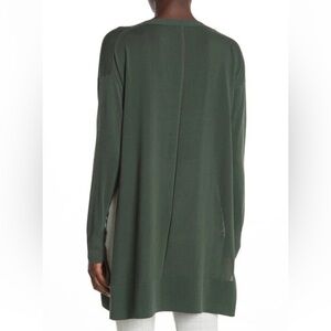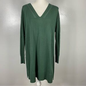 Long lined forest green tunic sweater with side slits.