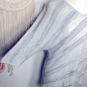 Lafayette 148 gray side striped ruched side knit tunic top large