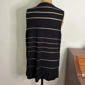 Lafayette 148 sz M vest wrap black and metallic mesh stripe cotton viscose EUC excellent used condition knitwear