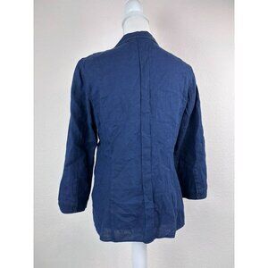 Lafayette 148 women's 6 navy blue linen pleated collared button down 3/4 sleeve