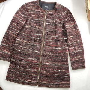 Lafayette 148 Blazer Size 6 New York Silk & Wool Tweed Long Coat Full Zip Brown