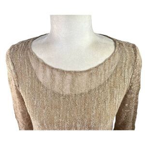 Lafayette 148 Linen Blend Mesh Knit Gold Metallic Sweater Size Small Top