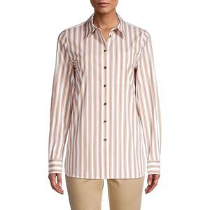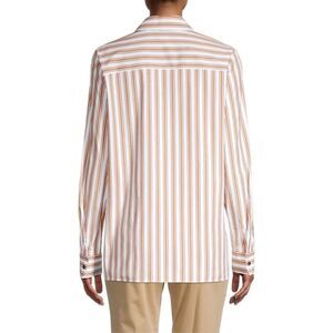 Lafayette 148 New York Ruxton Striped Button Down Shirt In Honeynut Multi XS NWT