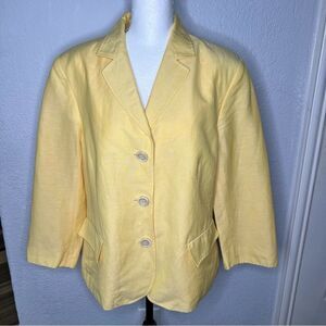 Lafayette 148 Pale Yellow Linen Blend Button Up Blazer Women Plus Size 14