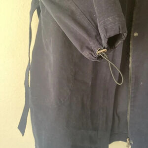 Lafayette 148 sz L navy cotton jacket snap and zip front with belt hooded EUC