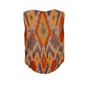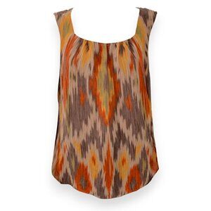 Lafayette Earthone Neutral Aztec Orange Taupe Luxury Silk Dress Shell Tank XL 14
