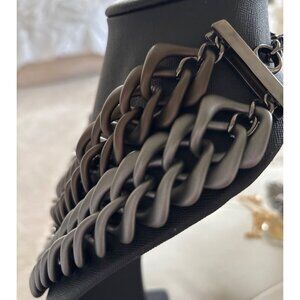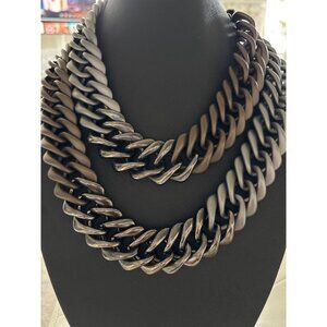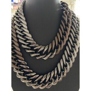 Lafayette Italy Chunky Multilayer Chain Necklace Metallic Silver & Brown Tones