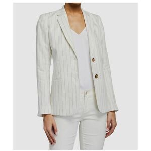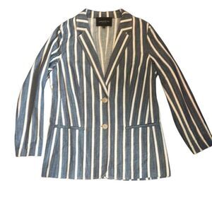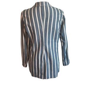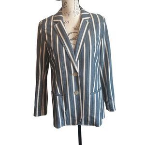Lafayette 148 N.Y. Blue Striped 100% Cotton Blazer Jacket 6