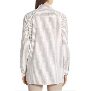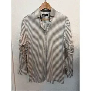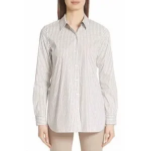 Lafayette 148 New York Helen Striped Button-Down Shirt White, Gray Size S