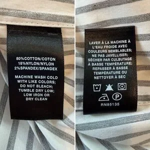Timeless tailoring meets modern polish in this Lafayette 148 New York Helen button-down shirt. Crafted in a crisp white base with refined gray vertical pinstripes, this classic piece offers a clean, sophisticated look perfect for work or everyday wear.