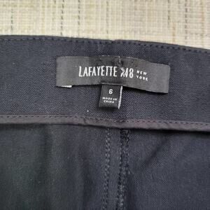 Lafayette 148 New York Cropped Bleecker Pants Size 6. Black Color. Sleek and streamlined, Lafayette 148 New York's cropped Bleeker pants are a minimalist's go-to pair. Cotton-blend sleek cropped pant. Banded waist. Straight-fit. Size 6. Excellent Used Condition. 96% Cotton; 4% Elastane.