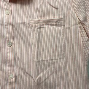 Lafayette 148 Orange White Striped 3/4 Sleeve Button Front Stretch Shirt Sz S.