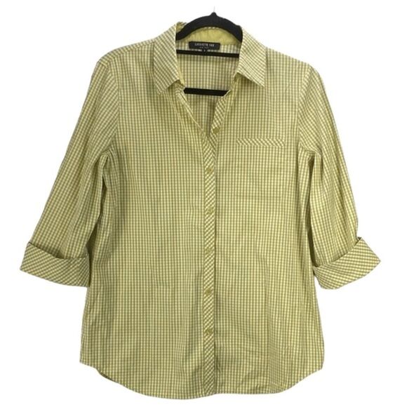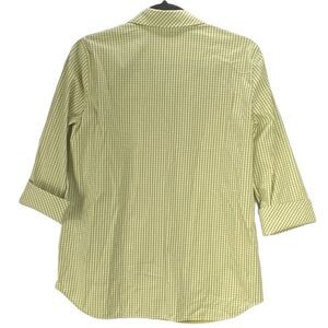 Lafayette 148 Wm’s Sz Sm Green Checkered 3/4 Sleeve Turn Cuff Button Down Shirt