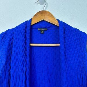 Lafayette 148 Women’s Royal Blue Textured Cotton Sleeveless Drape Cardigan M