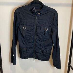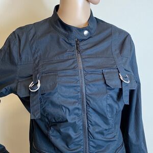Lafayette 148 New York black cotton lightweight moto jacket size 8