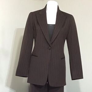 Lafayette 148 New York Brown With Red Pinstripes Single Button Blazer