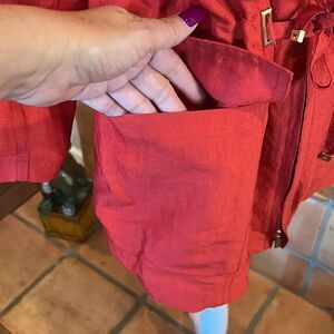 Gorgeous jacket and a silk viscose blend with gold hardware!