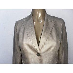 This Lafayette 148 New York blazer is made of a high-quality wool cotton blend that is sure to keep you comfortable and stylish. It comes in a beautiful beige color and is perfect for any professional or formal occasion. The jacket is designed for women, specifically in petite size, and is a size 2P.
