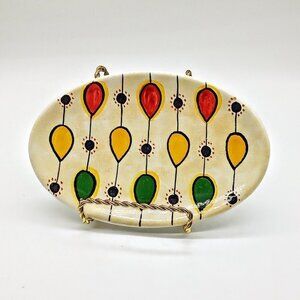 Versatile Lafco A Mano Giglioni Deruta hand-painted oval ceramic dish in bright red, yellow and green.