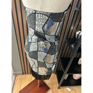 La femme black and silver sleeves dress with fringe 1920 style y2k size 8 mini