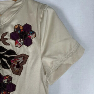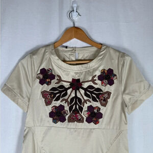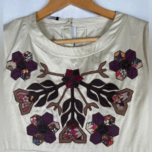 Lafer Tan Dress Womens 4 Patchwork Embroidered Cottagecore Boho Hippie Indie