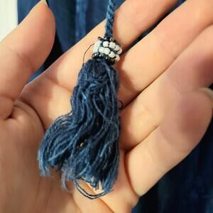 Boho Deep Blue Embroidered Tunic With Front Draw Strings