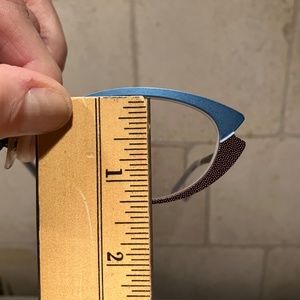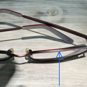 Worn a few times, tiny chip on the top of the frame, see last picture and left arm that sits behind the ear (picture 4) has three small scratches.