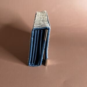 Compact and beautifully crafted, this Laga small fold wallet features intricate blue and white embroidery on a vegan-friendly fabric base. Handmade with care, it’s perfect for minimalist carry, travel, or gifting. Preowned and gently used.