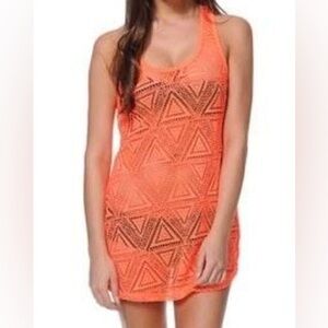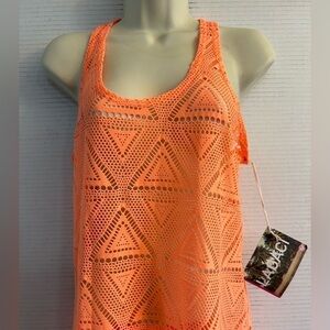Lagaci orange beach swim suit dress cover up in 95% polyester and 5% spandex. Pullover racer back. NWT SzM