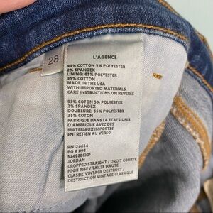 L’agance Jordan Cropped Straight High Rise Sz 28 Blue