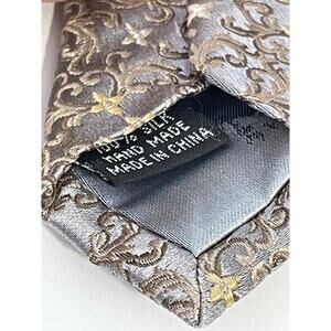 Stunning Rare Lagatani Bendiction Silk Necktie Long Silver Gold Embossed Bridgerton Regency. Thick, textured, great for your wedding day.