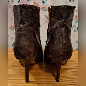 L’agence Aimee Brown Snake Skin Boho Indie Kitten Boot Heel Shoe SZ 8