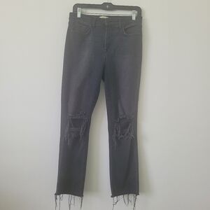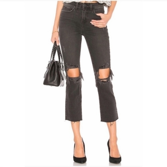 L'agence Audrina Straight Leg crop Jean in Vintage Black Worn Destruct Size 28