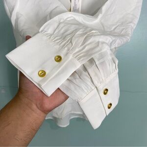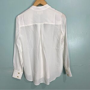 L’agence Band Collar Deep Neck Blouse Silk White Sz XS