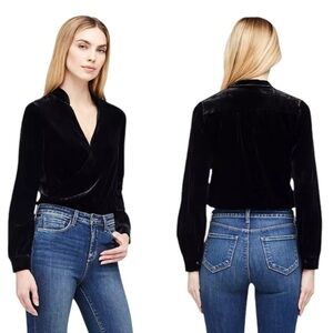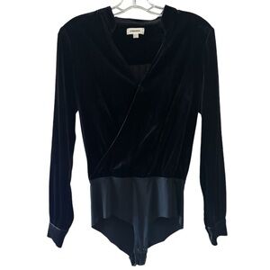 L’agence Black Luxurious Velvet Marcella Crossover Bodysuit XS Romantic Goth