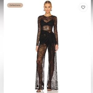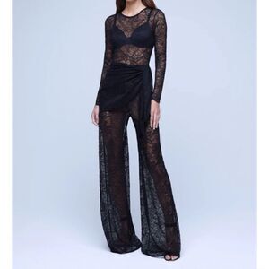 L'agence Black Sheer Lace Ali Jumpsuit Medium