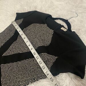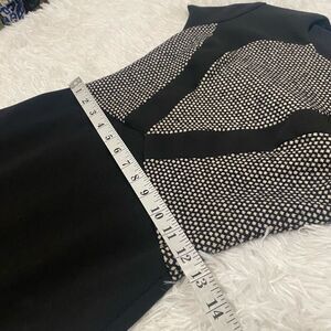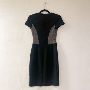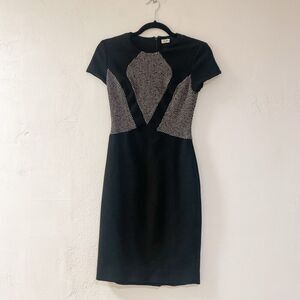 SO cute and in good preowned condition from L’agence! This cap sleeve dress has a geometric design along the chest and a back zip closure.z Black in color. Size 2.