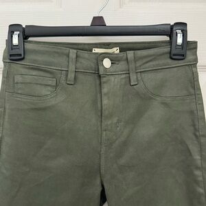 L’agence Coated Skinny Jeans Army Green Size 26 Slim Sheen Textured Layering